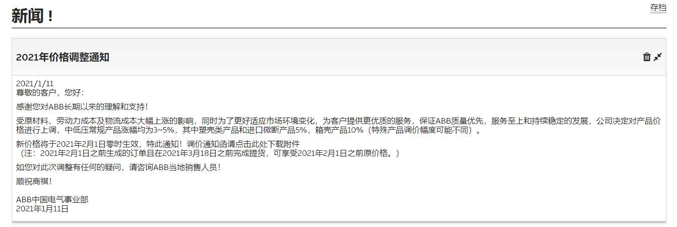 We received a notice from ABB that their prices will be adjusted from 1st Feb, 2021.